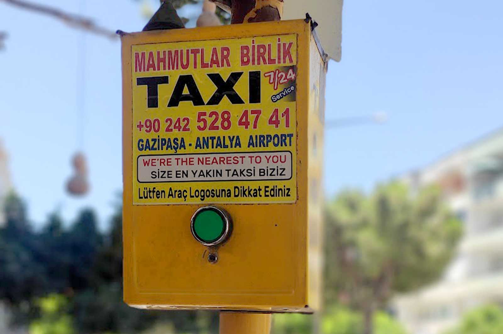 Такси в Турции — отдельная боль, особенно в Стамбуле, где население за последние 30 лет выросло в два с половиной раза, а число машин в таксопарках почти не изменилось. Но в других городах ситуация получше: там есть волшебная кнопка! Кнопка вызова такси может висеть на каждом втором дереве, отправляет запрос к ближайшей стоянке, машина должна приехать в течение 10 минут. Альтернативный кнопке вариант — подружиться с ближайшей стоянкой напрямую, но тут базовым уровнем турецкого не обойтись.